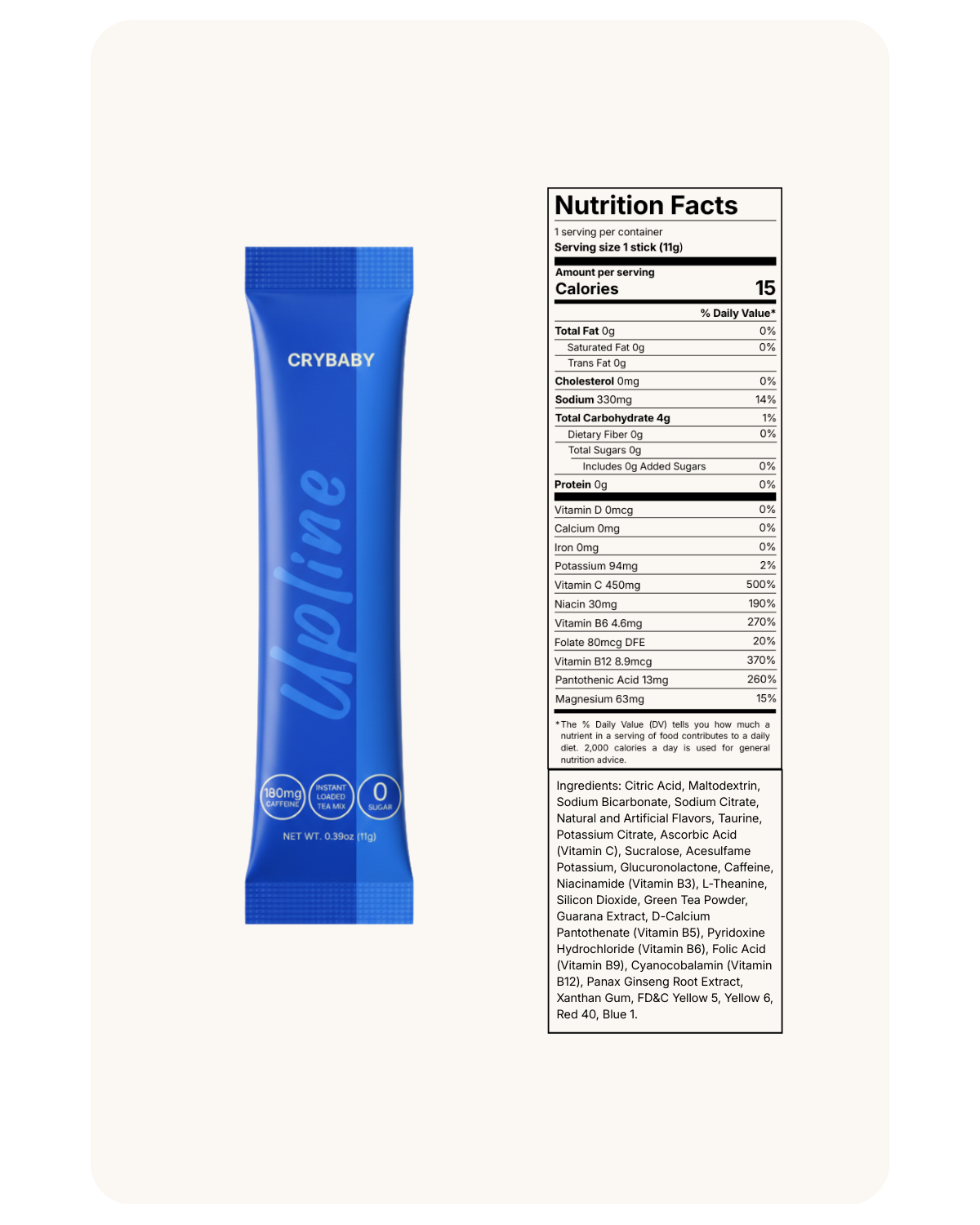 Get ready to pucker up with Crybaby! This tea packs a punch with sour blue blast, sour cherry, and lemonade flavors. Perfect for those who need a little sour in their life.